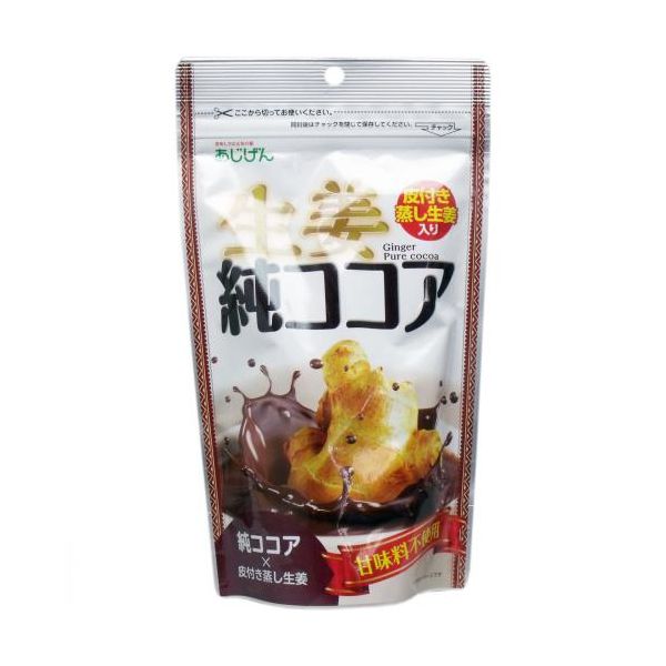 | 商品の特徴 | 砂糖不使用の純ココアと、皮付き蒸し生姜粉末をブレンドし、生姜ココアを作りました。お湯を注ぐだけで生姜ココアが作れます。 | ||