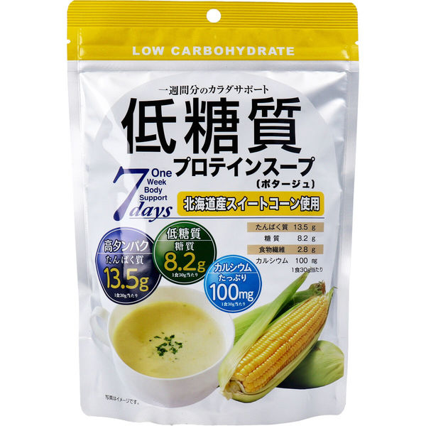 | 商品の特徴 | 1杯当たり13.5gのたんぱく質が摂れるクリーミーなコーンスープ。大人からお子様までみんな大好きなコーンスープを高たんぱく&低糖質に仕上げました。●北海道産スーパースイートコーン使用。やさしい甘さが引き立ちます。●低糖質で食物繊維やカルシウムも含みます。●お湯に溶くだけ!簡単&時短。ご飯を入れてリゾット風など、お好きな食べ方でどうぞ。 | ||