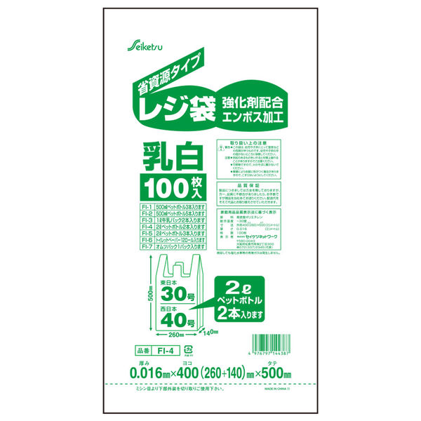 セイケツネットワーク FI-4 レジ袋 40号 乳白 0.016×400×500mm 1セット(100枚×30袋)