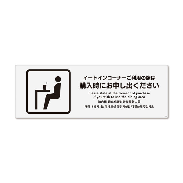 | 商品の特徴 | 軽減税率制度対応イートインコーナーを利用する場合に購入時に申し出てもらうための案内標識サインステッカー。 | ||