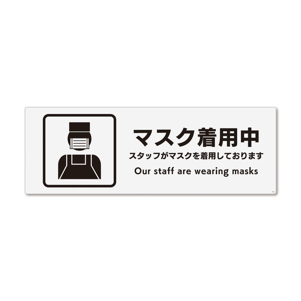| 商品の特徴 | 店内など人が密集する場所に!スタッフのマスク着用をPRするための案内標識サインステッカー。 | ||