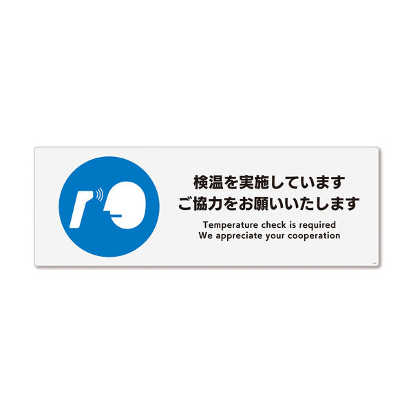 KALBAS 標識 検温を実施しています ステッカー強粘 400×138mm 2枚入 KFK2243 1セット(2枚)(直送品)