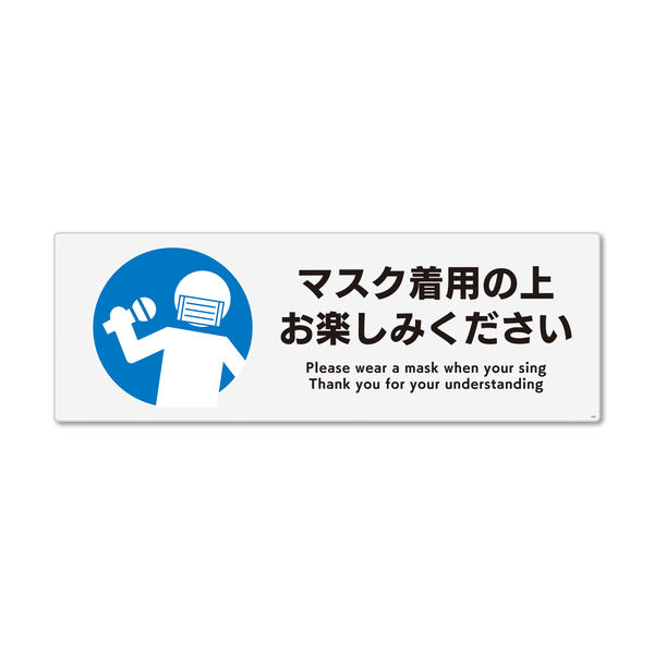 商品の特徴 マスク着用でのカラオケ利用をお願いするステッカー看板。
