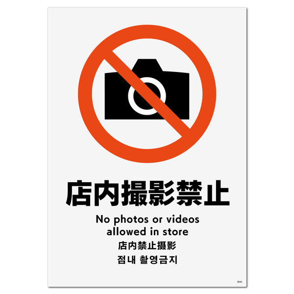 | 商品の特徴 | 店内での写真撮影はご遠慮いただきたい場合に円満に警告できる禁止標識サインステッカー。 | ||