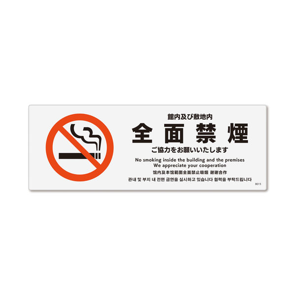 KALBAS 標識 全面禁煙依頼 ステッカー強粘 140×50mm 5枚入 KFK8015 1セット(5枚)(直送品)