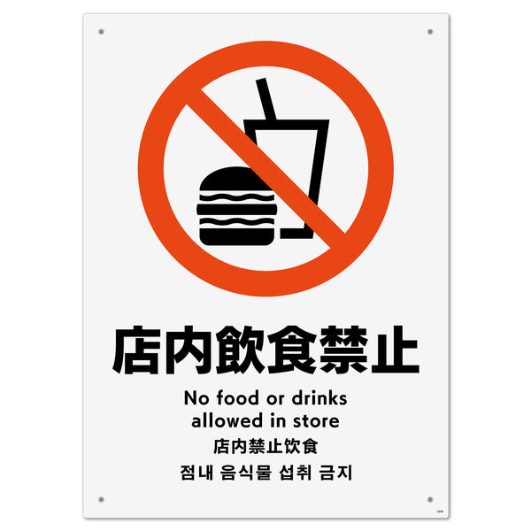 | 商品の特徴 | 店内での飲食はご遠慮いただきたい場合にソフトに警告できる禁止標識サイン看板。 | ||
