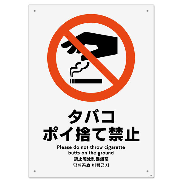 | 商品の特徴 | タバコや吸い殻のポイ捨て禁止を表す禁止標識サイン看板。 | ||