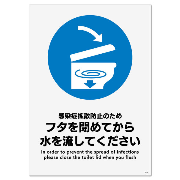 | 商品の特徴 | ウイルス対策のためトイレを流す際にフタを閉めるようお願いするプレート看板。 | ||