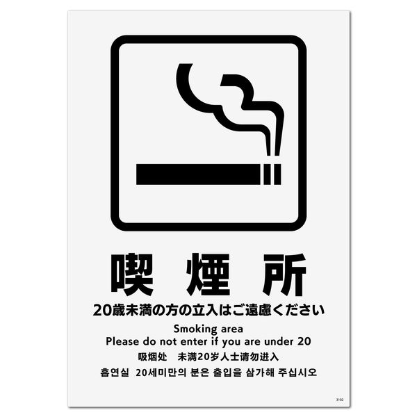 | 商品の特徴 | 改正健康増進法対応。受喫煙防止対策に!喫煙場所・喫煙コーナーに使える20歳未満の立入禁止標識サイン看板。 | ||