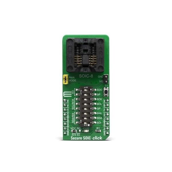 | 商品の特徴 | ●MikroElektronika セキュア SOIC click は、ユニバーサルソケットベースの click ボードです。 Microchip 暗号認証この click ボードは、 SPI 、 I2C 、 SWI インターフェイスベース IC をサポートしています。寄生電源 OTP 用外部電圧供給 高い柔軟性 | ||