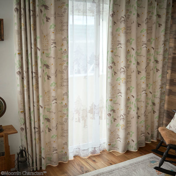 スミノエ MOOMIN セミオーダー カーテン ムーミン谷の地図 2500×1300mm アイボリー 1セット(2枚入)(直送品)