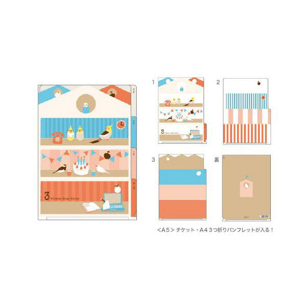 デザインフィル 3ポケットクリアホルダー <A5> トリ柄 A 35149006 5枚(直送品)