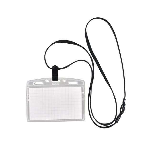IDカード 名刺 を保護する 上部チャック式 ソフトケース 、 ネックストラップ がセットになった アイドプラス 吊り下げ名札セット 。