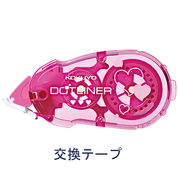 粘着面がドットタイプでのりギレの良い人気のテープのり、ドットライナーの詰め替えカートリッジ。かわいく貼れるピンクのハート柄。