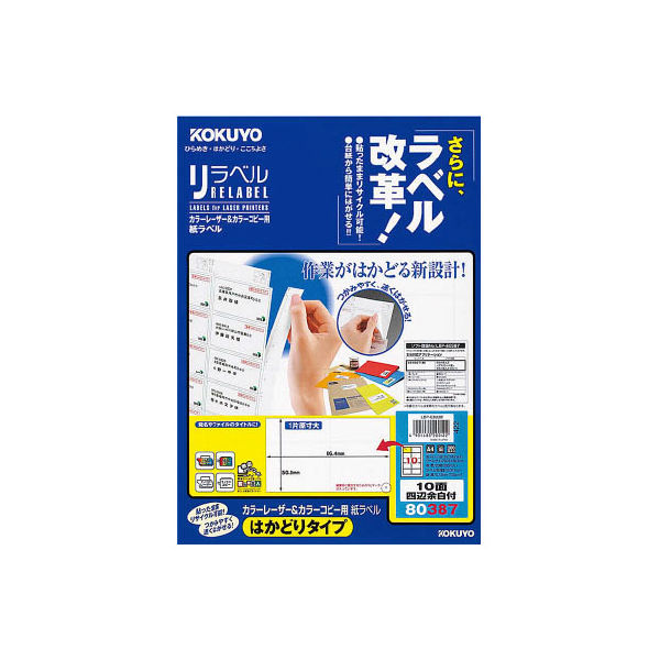 コクヨ カラーレーザー&カラーコピー用 紙ラベル〈リラベル LBP-E80387 1セット(40シート:20シート×2袋)