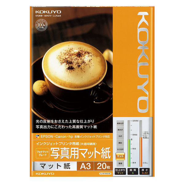 コクヨ インクジェットプリンタ用紙 写真用マット紙 A3 KJ-M14A3-20 1セット(40枚:20枚入×2袋)