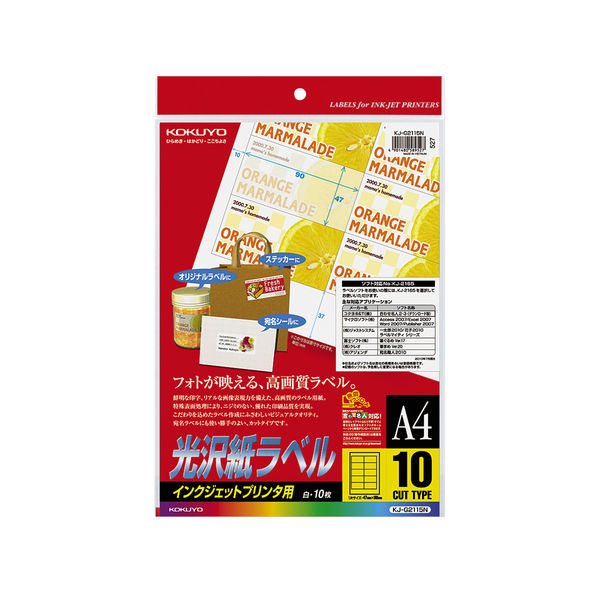 コクヨ インクジェットプリンタ用光沢紙ラベル A4 10面 KJ-G2115N 1セット(50枚:10枚入×5袋)