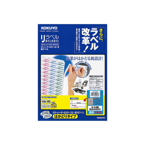 コクヨ カラーLBP&コピー用紙ラベル リラベル 44面四辺余白付 LBP-E80388 1セット(40シート:20シート入×2袋)