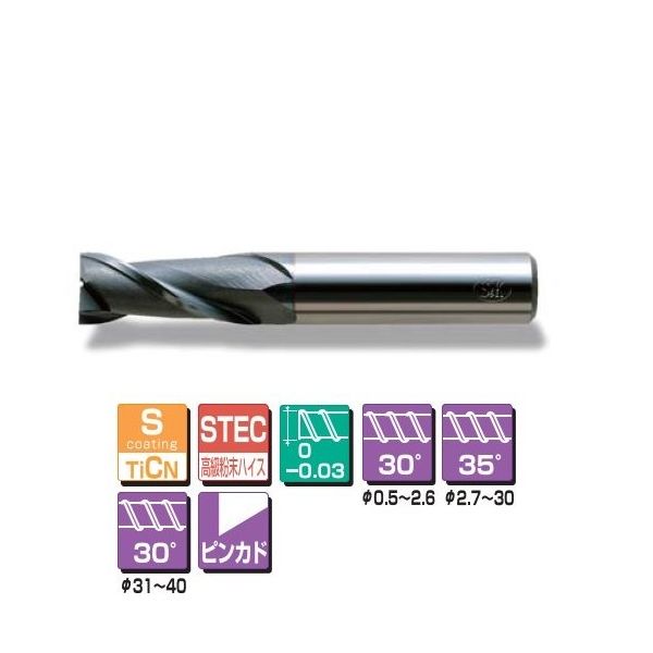| 商品の特徴 | ●高級粉末ハイスにSコーティング●溝・側面・穴あけ加工など幅広く使用できます●S(TiCN)コーティング●高級粉末ハイス | ||