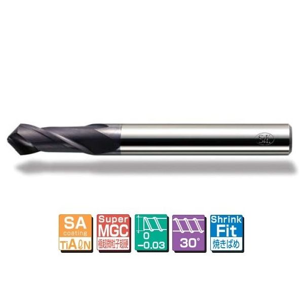 | 商品の特徴 | ●エンドミルとドリルの設計思想の融合により、幅広い用途でお使いいただけます●面取り部にダブルアングルを採用●バリの少ないきれいな仕上面に加工できます●SA(TiAlN)コーティング●極超微粒子超硬 | ||