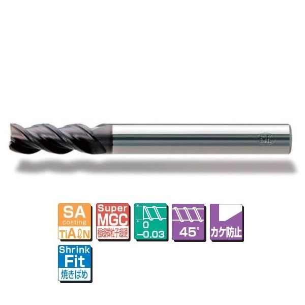 商品の特徴 ●オリジナルの刃型により、SUSの加工に最適●荒加工から仕上げ加工まで広範囲に対応●ニッケル合金・チタン合金加工にも対応●びびり振動にも強い3枚刃●SA(TiAlN)コーティング●極超微粒子超硬