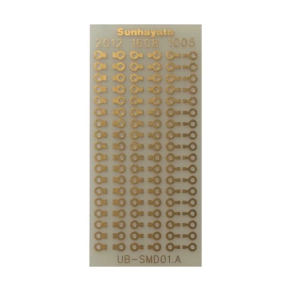 | 商品の特徴 | ●SMD部品を2.54mmピッチに変換しブレッドボードなどで使用できます。●FR-4、片面金フラッシュ仕上、板厚0.4mm、穴径0.9mmφ | ||