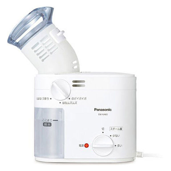 | 商品の特徴 | パナソニックの「スチーム吸入器(EW-KA65)」は、帰宅後の「スチームうがい」の新習慣を提案する商品です。約43℃のたっぷりスチームで、のど・鼻の奥まで潤わせ、侵入した異物を洗い流します。のど・鼻の状態に合わせて、スチームの種類や温度なども切り替えられるため、かぜ・花粉・乾燥などが気になる季節におすすめです。 | ||