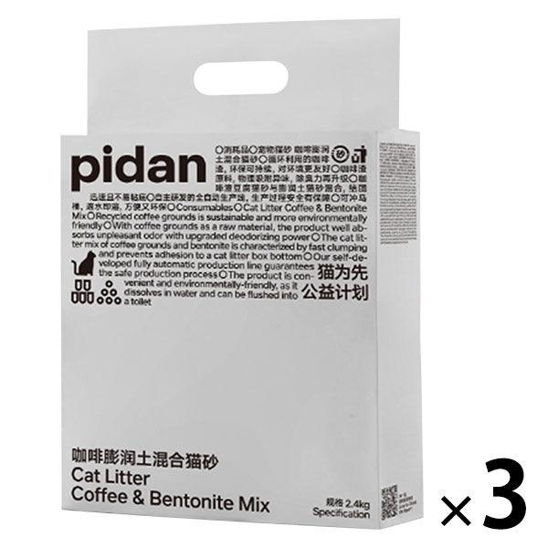 PIDAN 猫砂 コーヒー ベントナイトミックス 2.4kg 1セット(1袋×3)トイレに流せる