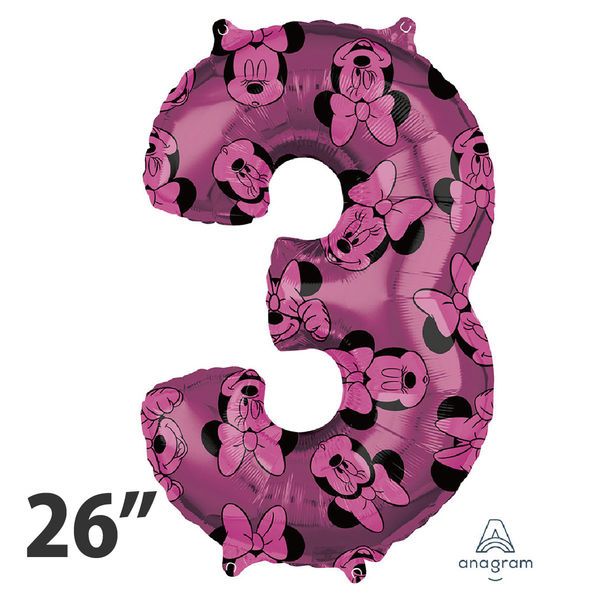 Amscan 40138<26.ミニーナンバー3バルーン ディズニー 風船 0203670513 1パック(1枚入)(直送品)