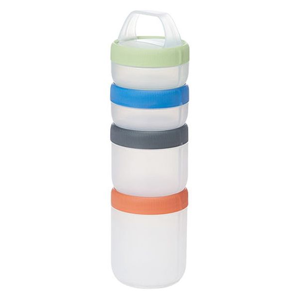 | 商品の特徴 | ・重ねて固定できるコンテナのセット・簡単操作で連結でき、粉末やサプリメント、水などをまとめて持ち運ぶのに便利・コンテナ同士は90度ひねるだけで付け外し可能で、コンテナのフタは半回転(180度)ですばやく開閉可能・フタは密閉性の高いシリコーンゴム製パッキン内蔵で液体にも対応・電子レンジ、食器洗い乾燥機対応・付け外し可能なループ付き・耐熱温度:120度・耐冷温度:-20度 | ||