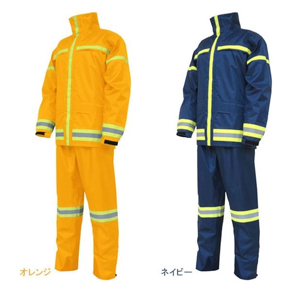 | 商品の特徴 | ・360度リフレクター搭載の高視認タイプレインスーツ・ヘルメット対応連動フードは取り外し可能で、ヘルメット未装着時も頭部にジャストフィットする調節機能付き・服内の温度調節に便利な脇下ベンチレーション・フロントWジッパー・二重袖口・左胸に便利な収納式クリアポケット付き・ズボン裾はマチ入りでファスナー付き・前開きファスナーとウエストコード付き・専用収納袋付き・耐水圧:20000mm H2O以上 | ||