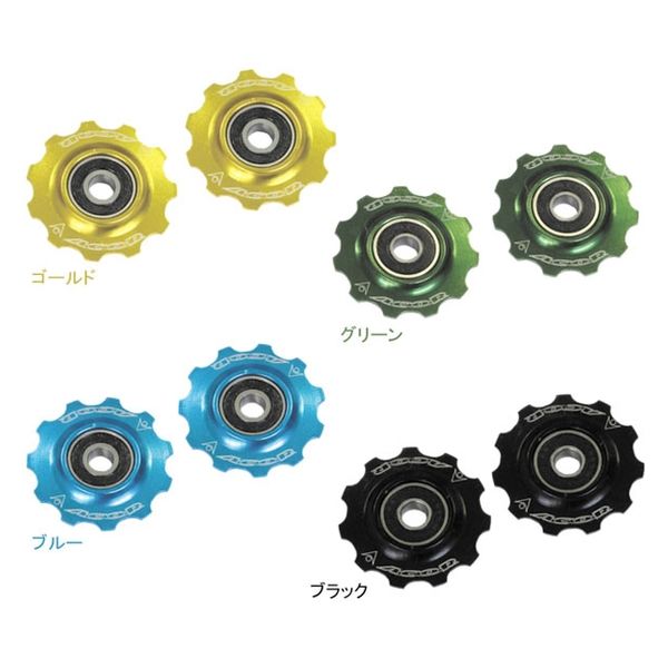 商品の特徴 ・アルミ製軽量プーリー(11T×2個)・ベアリング内蔵・ベアリング非内蔵プーリーからの交換で大幅なフリクション低減・リアディレイラー周辺のドレスアップにも最適・2個セット