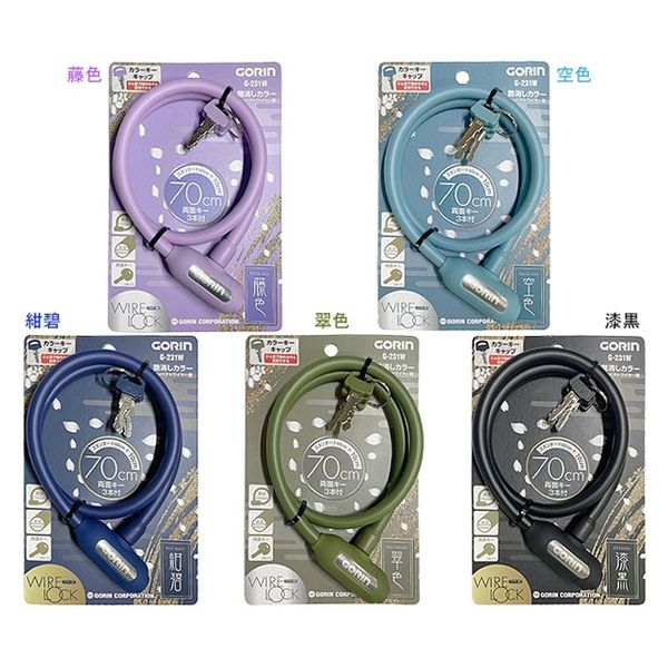 | 商品の特徴 | ・つや消しカラーがおしゃれなワイヤーロック・パッケージに「和モダン」デザインを採用・コンパクトながら使い勝手の良い700mmワイヤー・引っ張り強度1400N(140kg)以上でJIS規格に相当・鍵の裏表を気にせず鍵穴に通せるリバーシブルキーを3本付属・一目で他のカギと判別できるカラーキャップ付き | ||
