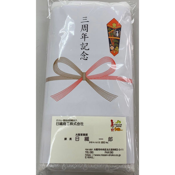 日繊商工 三周年記念の熨斗付き 高品質の今治フェイスタオル【名刺ポケット付袋入】 171787-3shunen-50 1箱(50枚入)(直送品)