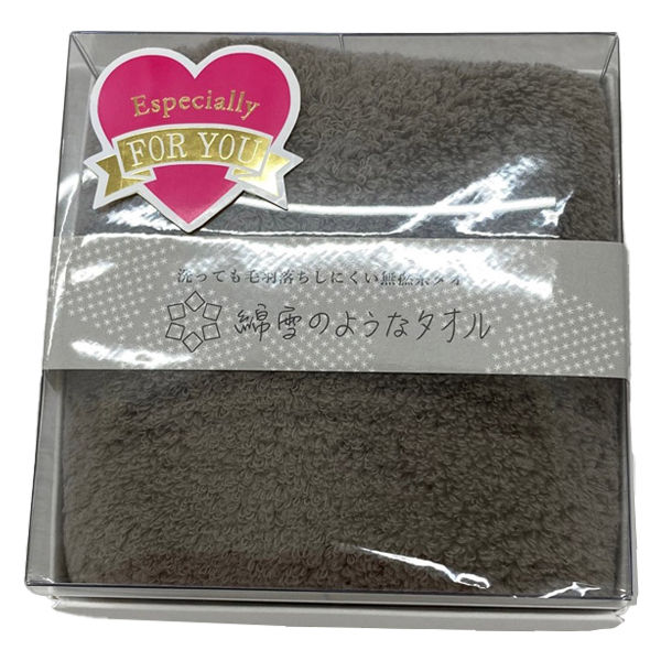 | 商品の特徴 | 無撚糸をつかったふわふわのタオルギフトです。1枚ずつ箱に入っており、「FOR YOU」のシールも貼っておりますので、ちょっとしたプレゼントや贈り物ギフトとしてもぴったりです。粗品や景品などのお配りものとしても是非。 | ||