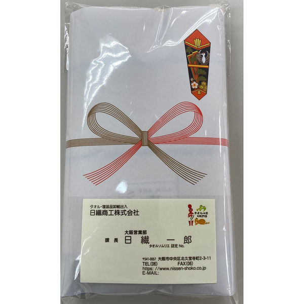 | 商品の特徴 | ご挨拶やお礼のシーンなど多岐にわたってお使い頂ける「無地熨斗付きのタオル」です。名刺を入れるポケット付きのOPP袋に入っております。 | ||