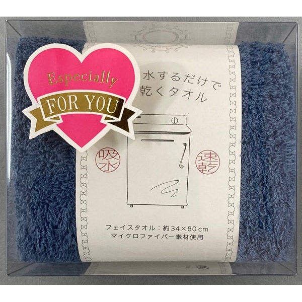 洗濯脱水するだけですぐ乾くフェイスタオル/ネイビー(FOR YOUのシール付き) HB7002NB(foryou)80 1箱(80個入)(直送品)