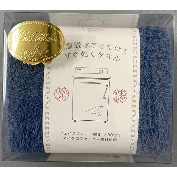 日繊商工 洗濯脱水するだけですぐ乾くフェイスタオル/ネイビー(ゴールドのシール付き) HB7002NB(gold)-80 1箱(80個入)(直送品)