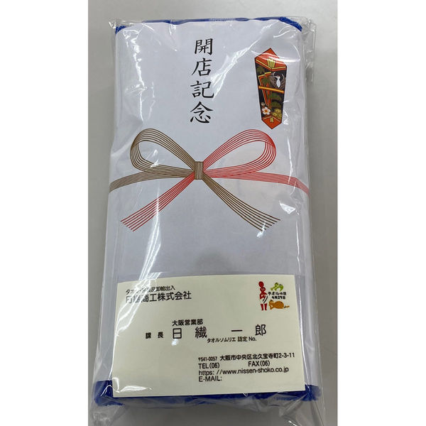 | 商品の特徴 | お店の開店記念のお配りものとしてお使い頂ける熨斗付きタオルです。名刺を入れるポケット付きのOPP袋に入っております。 | ||