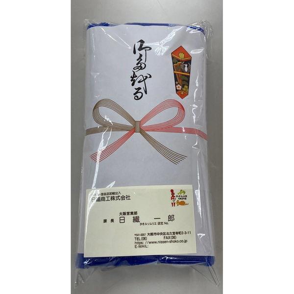 | 商品の特徴 | 御多織る(おたおる)の熨斗付きタオルです。新年のご挨拶だけでなく、日ごろのお配りものとしてもお使いいただけるタオルです。名刺を入れるポケット付きのOPP袋に入っております。 | ||