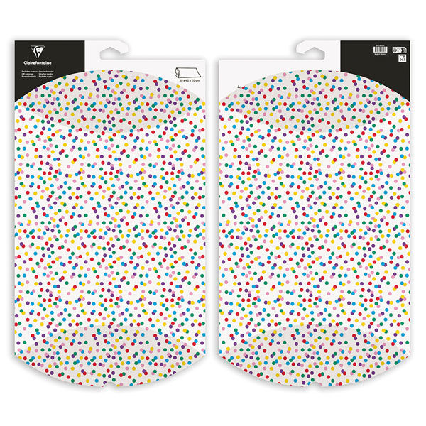 | 商品の特徴 | フランスの紙製品総合メーカー、クレールフォンテーヌ社の提案する フルカラーのデザイン入りピロー型ボックスがオンラインショップに登場です。 本体は台紙との一体型になっており、台紙をミシン目で切り離し、左右を折り込むだけで 簡単にギフト用のボックスを作ることができます。 Tシャツなどの衣類品やA4サイズまで入るLサイズのギフトボックスです。 サイズ:30×40×10cm(組み立て後) | ||