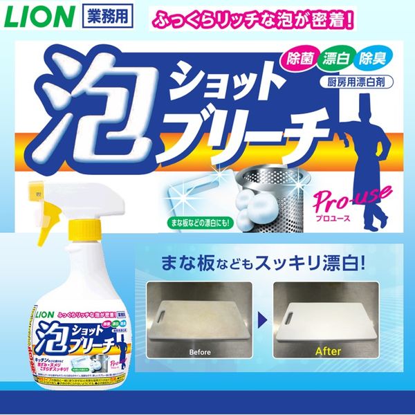 | 商品の特徴 | スプレーすると、ふわっとした泡が除菌・漂白したいところにしっかり密着するキッチン用漂白剤。狙ったところに泡が密着し、効果を発揮するので、すぐに泡だれて何度もスプレーする不満や無駄を解消。浸漬しにくいまな板の除菌・漂白・除臭はもちろん、シンクまわりやゴミ受けなどの黒ずみ・ヌメリなども分解。希釈不要。 | ||