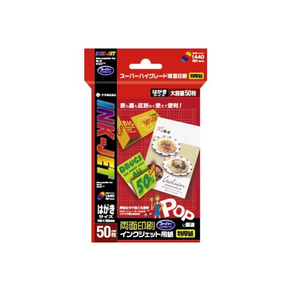 ササガワ インクジェット印刷専用紙 両面・特厚 はがき大 12A7624 1冊(50枚)