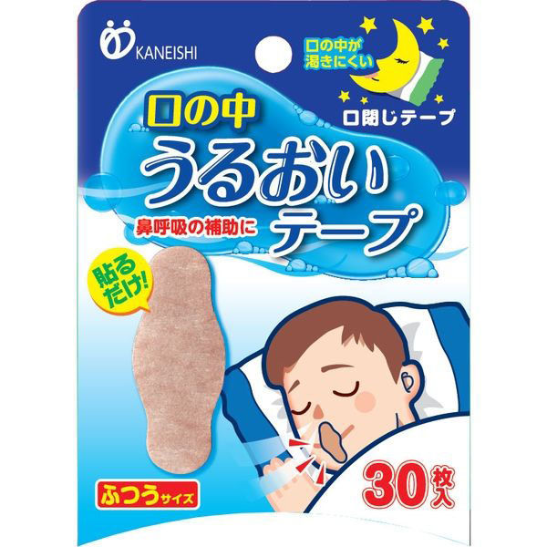 - ●通気性のあるレーヨン不織布を使用しているので、蒸れにくく快適です。 ●低アレルギー性の粘着剤を使用しているので、かぶれにくいです。 ●薄茶色タイプなので、目立ちません。 ●天然ゴムは使用していないので、ラテックスアレルギーの方でも大丈夫です。 ●サイズはふつうサイズと小さめサイズの2タイプです。 こんな経験はありませんか? 『朝起きるとノドが痛い!乾いている!』 こんな方の多くは、 口を開けたまま寝ていることが原因のようです。 口の中うるおいテープを貼って、口呼吸から鼻呼吸の習慣をつけましょう! また、口呼吸をすることで、雑菌やウィルス、花粉等を体内に取り込みやすくなってしまいます。 まずは、口の中うるおいテープを貼って、健康的な鼻呼吸の習慣を身につけましょう!