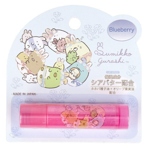 | 商品の特徴 | ●シアバター+ホホバ種子油+オリーブ果実油配合で唇にうるおい♪ ●すみっコぐらしのカワイイ香り付きリップクリームです。 ●3つの保湿成分配合:シアバター/オリーブ果実油/ホホバ種子油 ●乾燥した唇もしっとりぷるぷるに。 ●ブルーベリー:ブルーベリーの芳醇な優しい甘みを感じられます。 ●日本製です。 | ||