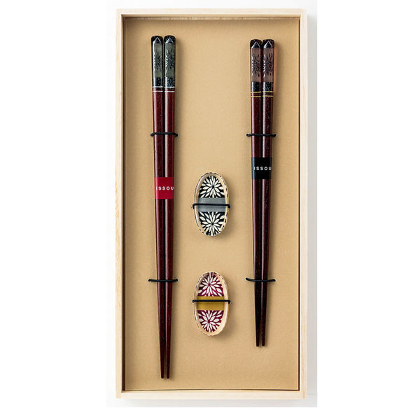 | 商品の特徴 | 幸せな食卓を思い浮かべながら、揃いのお箸と雰囲気を合わせた箸置きとのセットを一双オリジナルの箱にお入れしました。 | ||