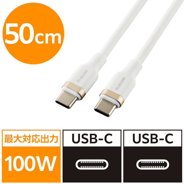 タイプCケーブル (USB-C to C) 50cm PD 100W シリコン 白 MPA-CCECSS05WH エレコム 1個