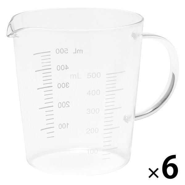 無印良品 耐熱ガラス メジャーカップ 500mL 約直径10.5×高さ12cm 1セット(1個×6) 良品計画