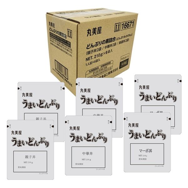 | 商品の特徴 | ●麻婆丼2個、中華丼2個、親子丼2個、計6個を詰め合わせた商品です。●【麻婆丼】丸美屋「麻婆豆腐の素」の味をベースに、豆腐・ひき肉、筍、きくらげが入った、具だくさんの麻婆丼。●【中華丼】筍、にんじん、白菜、ヤングコーン、豚肉、きくらげ入り。鶏がらスープや醤油等で本格的な味わいに仕上げた具だくさんの中華丼。●【親子丼】鶏肉、玉子をたっぷり使用し、玉ねぎを加えた、具だくさん。具材にこだわり鰹の風味を活かしただし仕立ての親子丼。 | ||