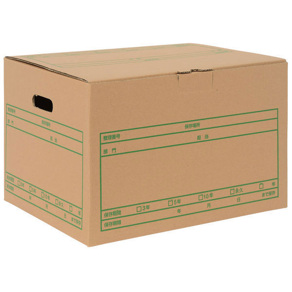 商品の特徴 底面の組み立てがワンタッチでできる、組み立てが簡単なダンボール製文書保存箱。箱を広げるだけなので、ガムテープはいりません。フタもテープで止める必要がないので、開け閉めが楽にできます。A4サイズの書類やファイルが入る大きさで、中に入っている物を記入欄に記載すれば、いつどこに何を収納したかすぐわかります。箱のサイドには持ち運びに便利な取っ手穴があります。耐荷重は約20kgなので、重い書類などに耐えられる丈夫なつくりになっていて、最大4段まで積むことができます。